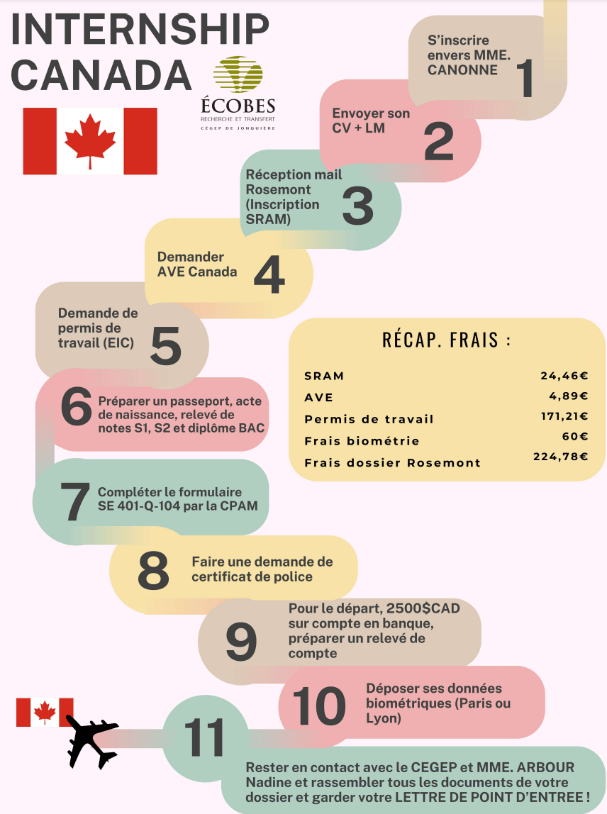 Réalisé en 2023, le but était de proposer un poster qui regroupe toutes les étapes que j'ai effectuées afin de pouvoir faire mon stage au Canada.